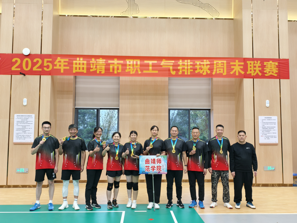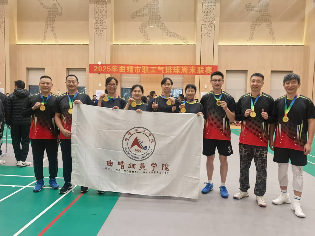 近日,2025年曲靖市职工气排球周末联赛圆满落幕。曲靖师范学院教职工代表队参赛,并以全胜的战绩获得冠军。